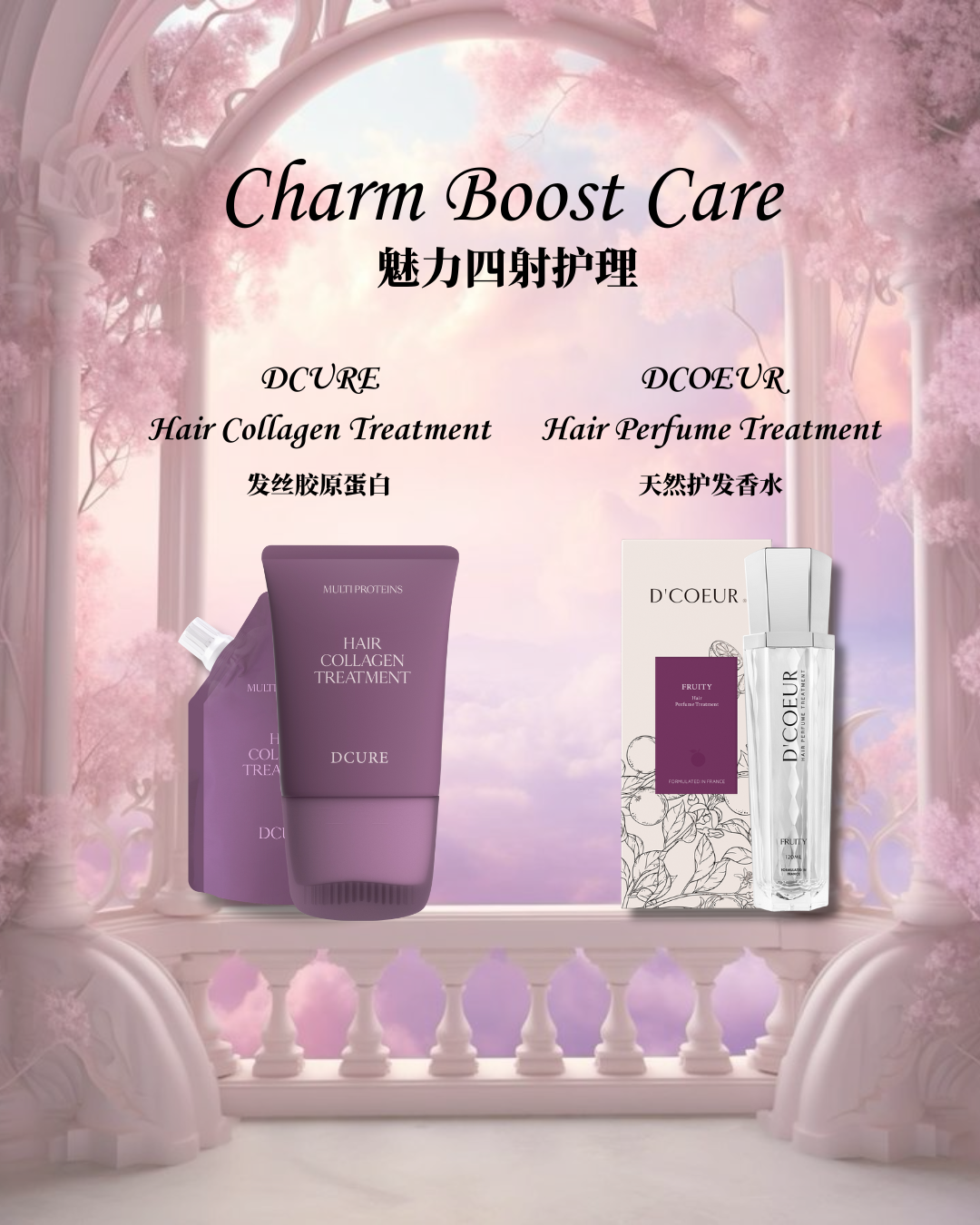 DCURE Multi Proteins Hair Collagen Treatment, enriched with 18 plant proteins and 3 key amino acids, quickly absorbs into damp hair to restore strength and smoothness. Suitable for daily use, it can be followed by DCOEUR Hair Perfume Treatment for an additional layer of smoothness, shine, and a luxurious fragrance that lasts up to 48 hours.