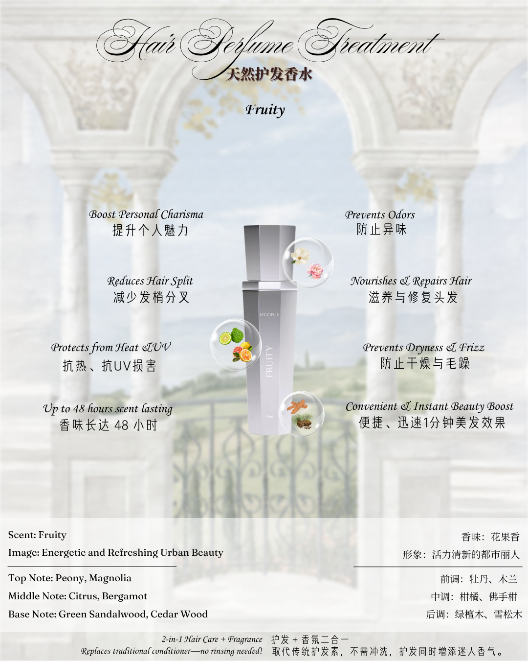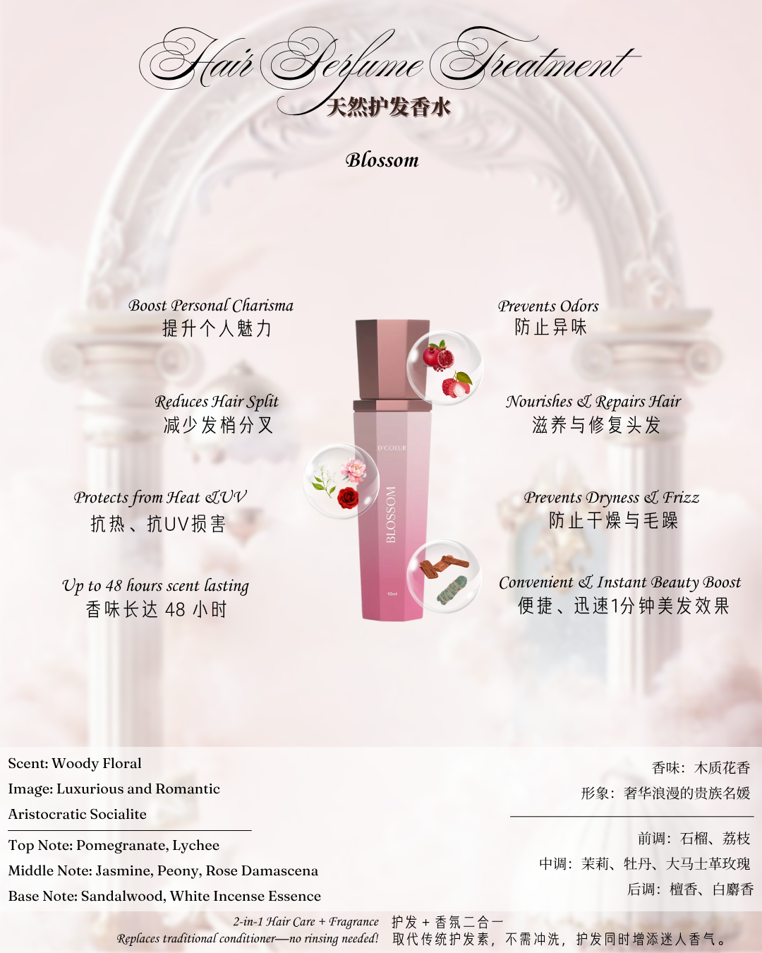 This briliant daily leave-in treatment instantly restore your hair to its prime in just one min. It repairs your hair with ecocert natural oil and innovative ingredients to intensely improve manageability, hair gloss, replenishes moisture for intense softness. It brings you to discover your inherent charm everyday with D'COEUR unique and lasting luxurius inspired fragrance.